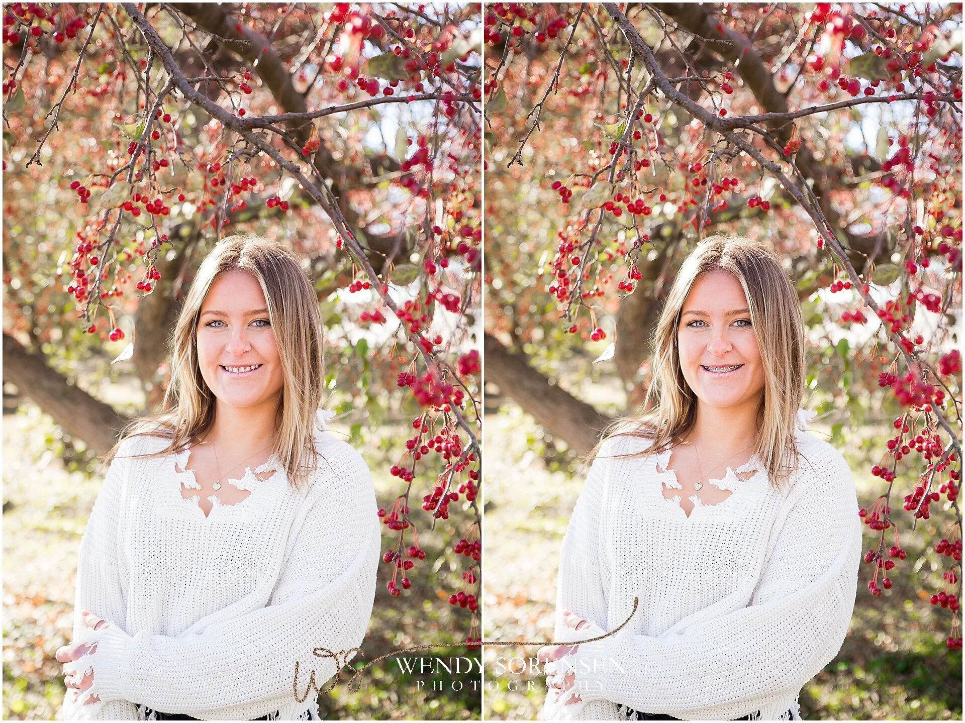 The ornamental trees in the Arboretum are always a favorite spot for photos. They’re bursting with blooms in the springtime, and full of colorful berries in the fall. With all of the color, Gabrielle’s cream fringed sweater was the perfect choice to end the session.